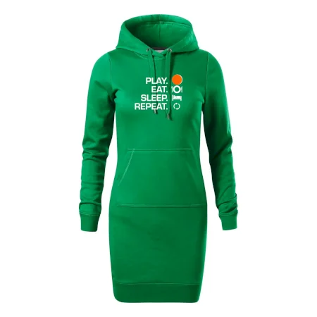 Dámske mikinové šaty MALFINI Snap 419 sú ideálnou voľbou pre ženy, ktoré hľadajú pohodlný a štýlový kúsok na voľný čas alebo každodenné nosenie. Ľahko vypasovaný strih s bočnými švami podčiarkuje ženskú siluetu, zatiaľ čo kapucňa s podšívkou a sťahovacou šnúrkou dodáva ležérny vzhľad. Šaty majú dĺžku nad kolená a sú vybavené našitým vreckom v štýle „klokanky“. Materiál je mäkký a príjemný na dotyk grâce à smesi bavlny a polyesteru s nepočesanou vnútornou stranou.