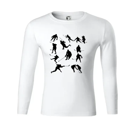 Triko s hokejistickými ikonkami ideální pro začínajícího hráče hokeje nebo klidně i jako dárek k narození malého hokejisty, protože tento motiv umíme natisknout i na body. Udělej radost malému hokejistovi a pořiď mu perfektní tričko nebo klidně i tašku na hokejový trénink.