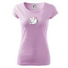 Trendové dámske tričko s veľmi krátkym rukávom, voľnejšieho strihu, v dolnom kraji všité do širokého lemu. Okrúhly priekrčník s úzkym lemom zo zhodného materiálu.