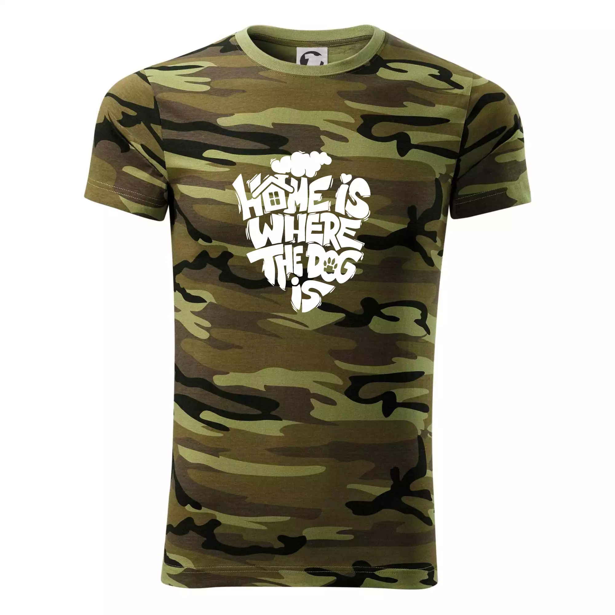 Tričko strednej gramáže vo farbách camouflage. Strih s bočnými švami. Lem priekrčníku z rebrového úpletu s prídavkom 5% elastanu. Vnútorná časť zadného priekrčníka začistená páskou vo farbe camouflage.