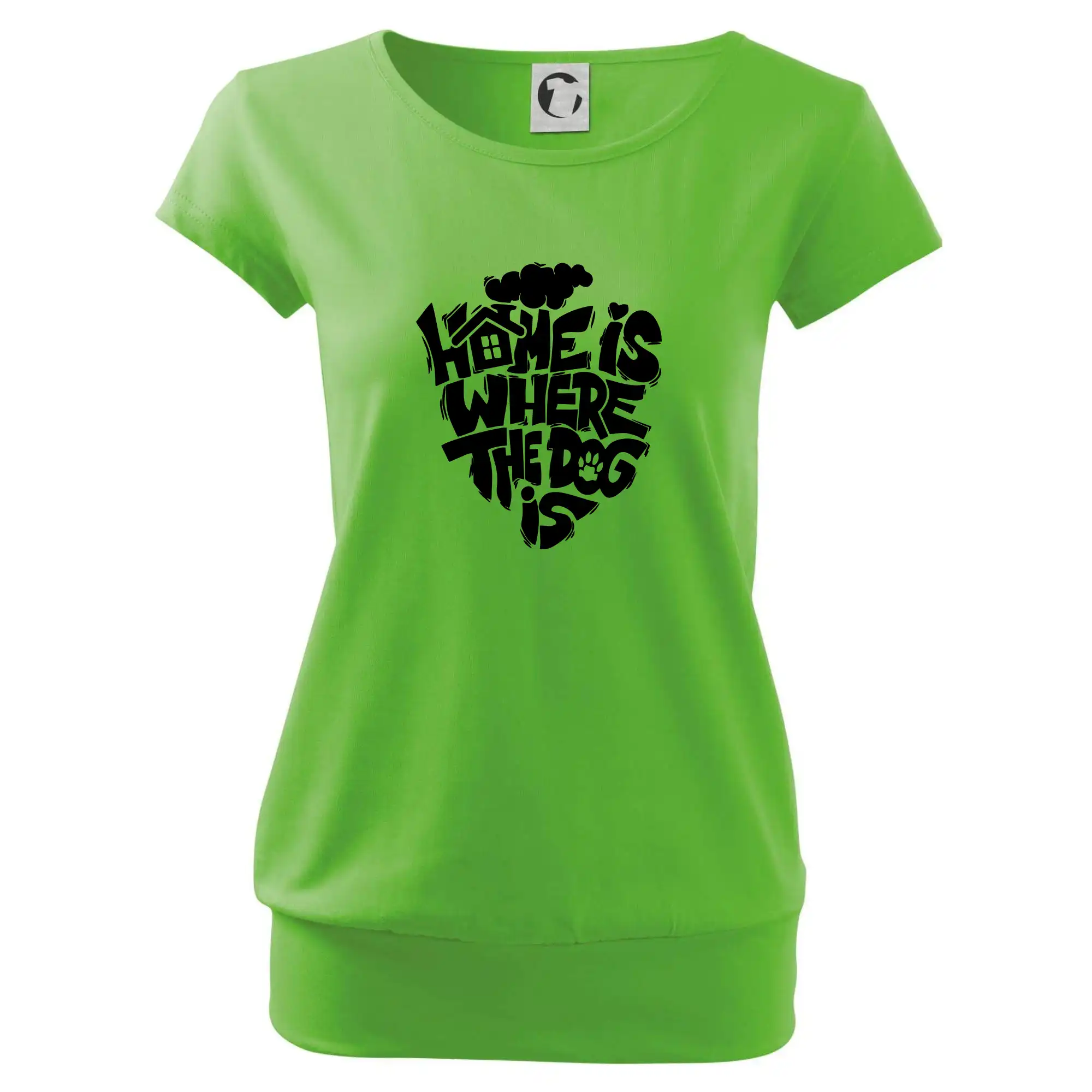 Trendové dámske tričko s veľmi krátkym rukávom, voľnejšieho strihu, v dolnom kraji všité do širokého lemu. Okrúhly priekrčník s úzkym lemom zo zhodného materiálu.