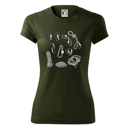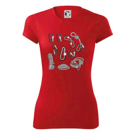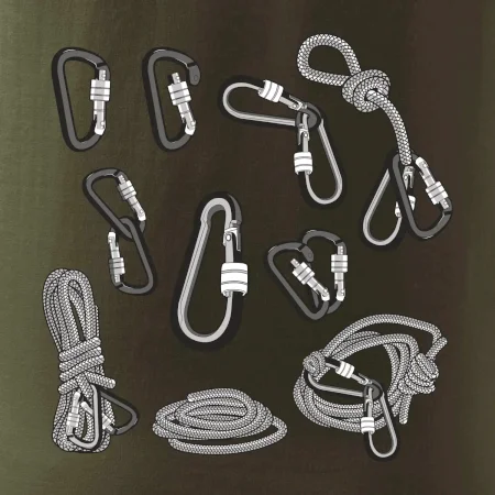 Poriadny horolezec musí mať poriadnu horolezeckú výbavu: karabínu, lano, úväz a samozrejme tričko s horolezeckým motívom
