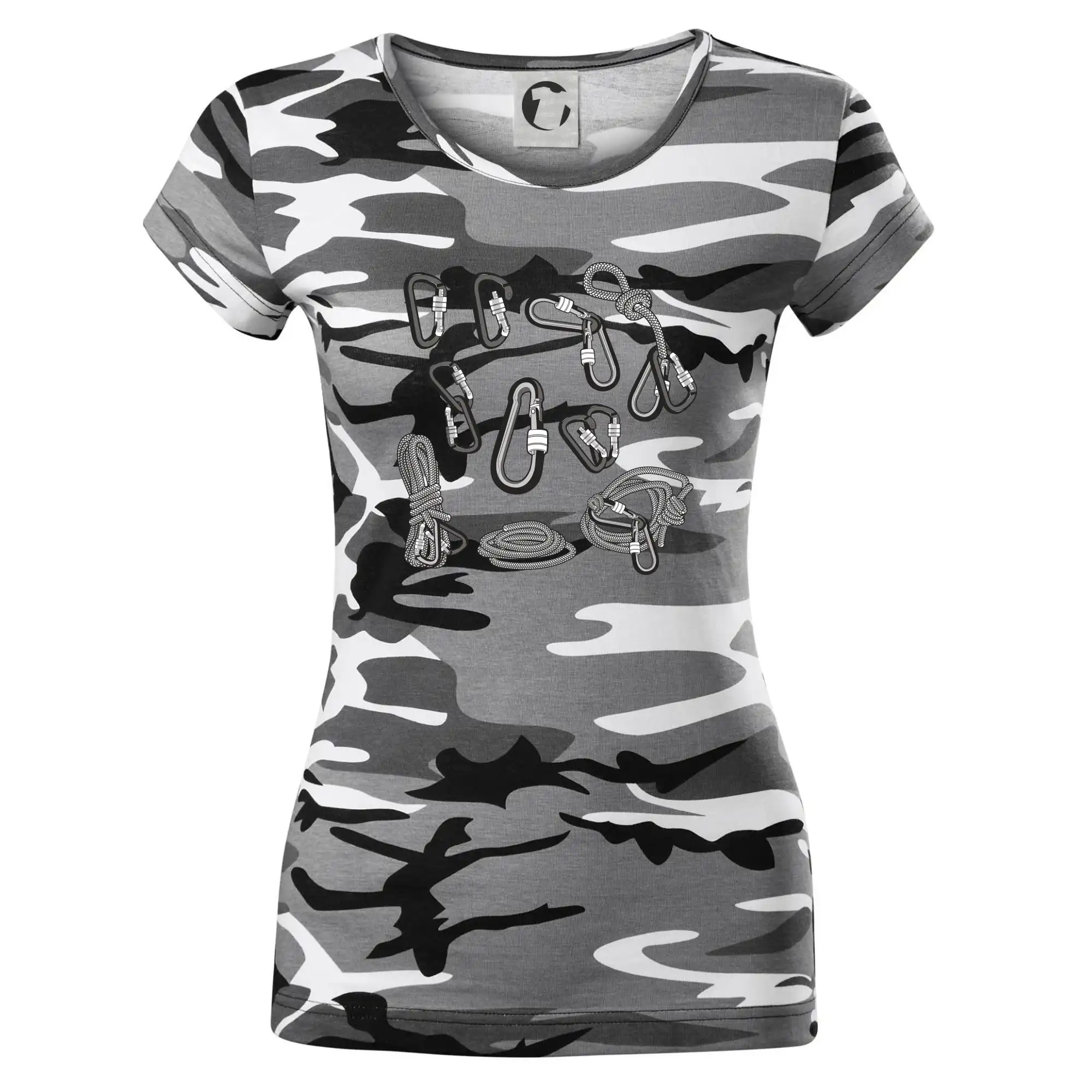 Poriadny horolezec musí mať poriadnu horolezeckú výbavu: karabínu, lano, úväz a samozrejme tričko s horolezeckým motívom