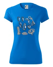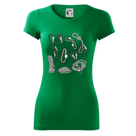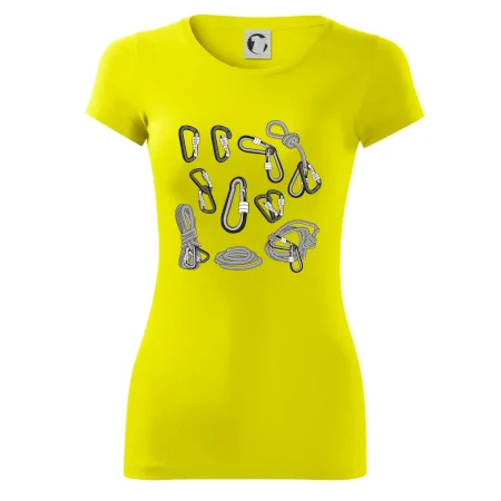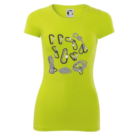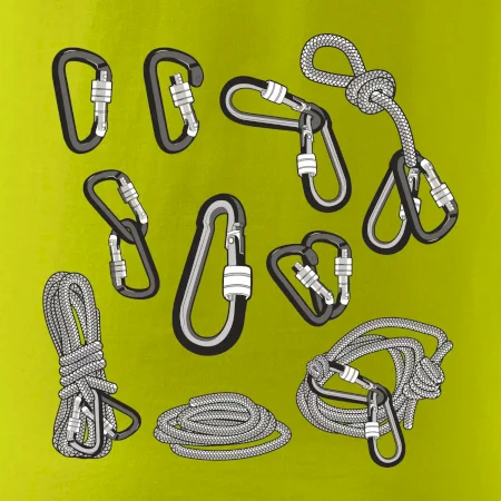Poriadny horolezec musí mať poriadnu horolezeckú výbavu: karabínu, lano, úväz a samozrejme tričko s horolezeckým motívom