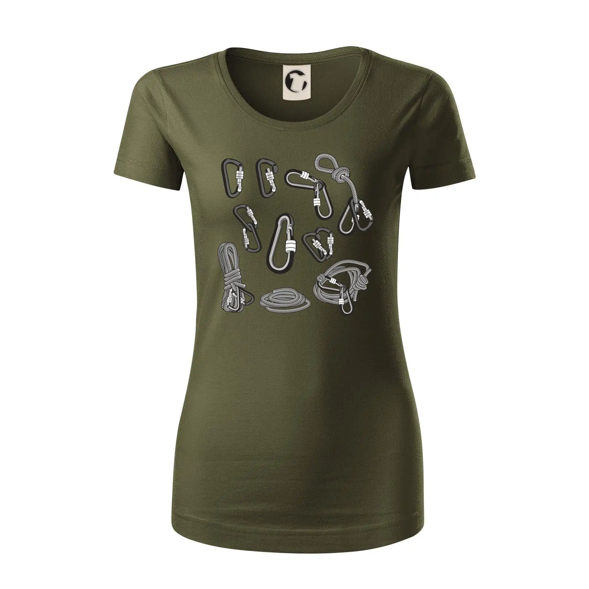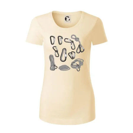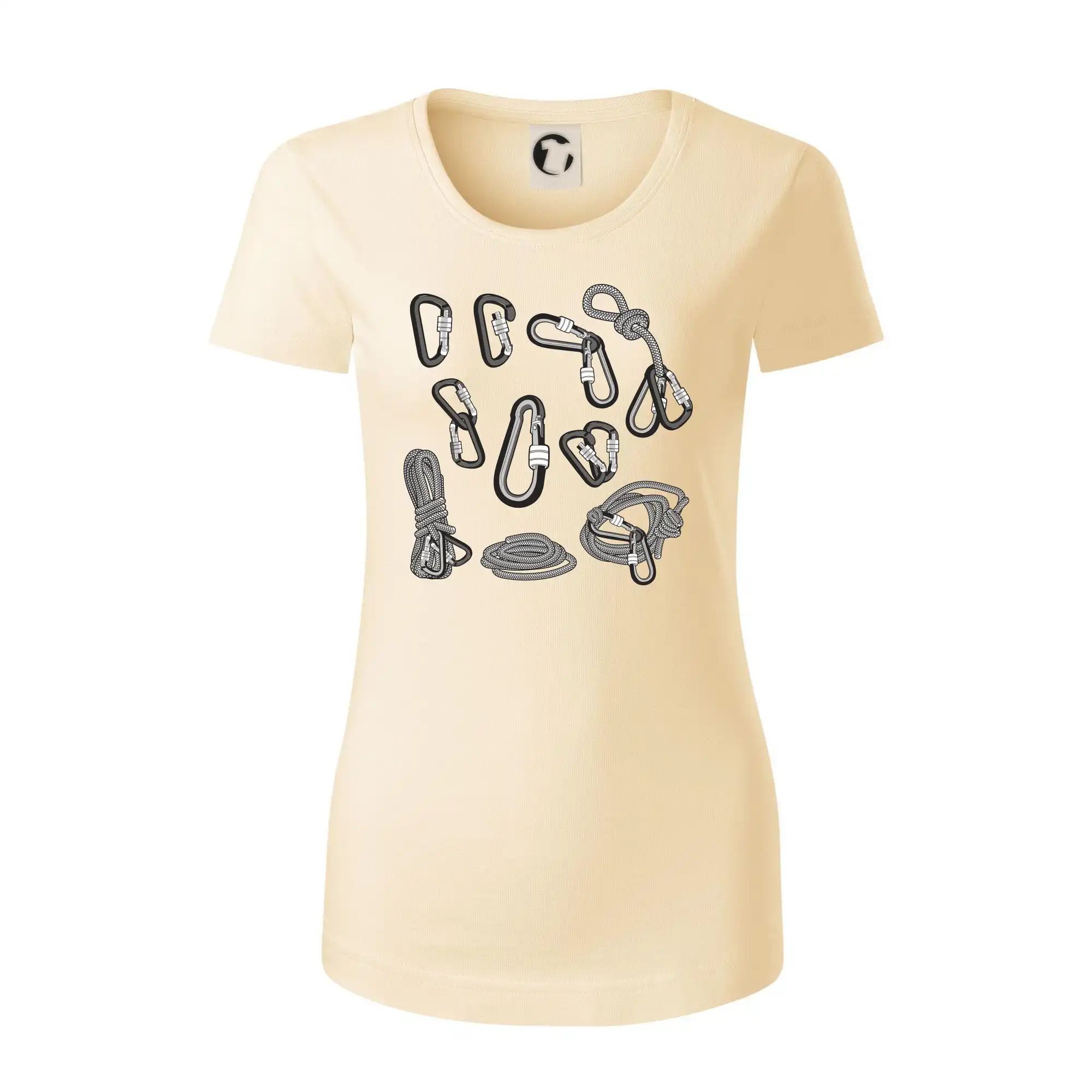 Poriadny horolezec musí mať poriadnu horolezeckú výbavu: karabínu, lano, úväz a samozrejme tričko s horolezeckým motívom