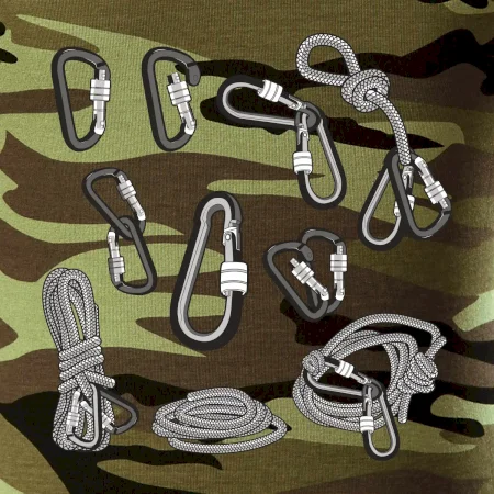 Poriadny horolezec musí mať poriadnu horolezeckú výbavu: karabínu, lano, úväz a samozrejme tričko s horolezeckým motívom