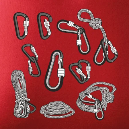 Poriadny horolezec musí mať poriadnu horolezeckú výbavu: karabínu, lano, úväz a samozrejme tričko s horolezeckým motívom