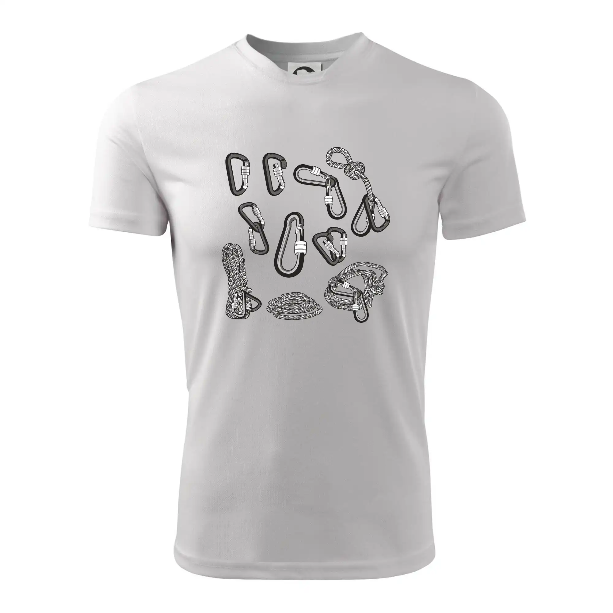 Poriadny horolezec musí mať poriadnu horolezeckú výbavu: karabínu, lano, úväz a samozrejme tričko s horolezeckým motívom