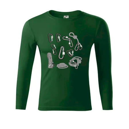 Poriadny horolezec musí mať poriadnu horolezeckú výbavu: karabínu, lano, úväz a samozrejme tričko s horolezeckým motívom