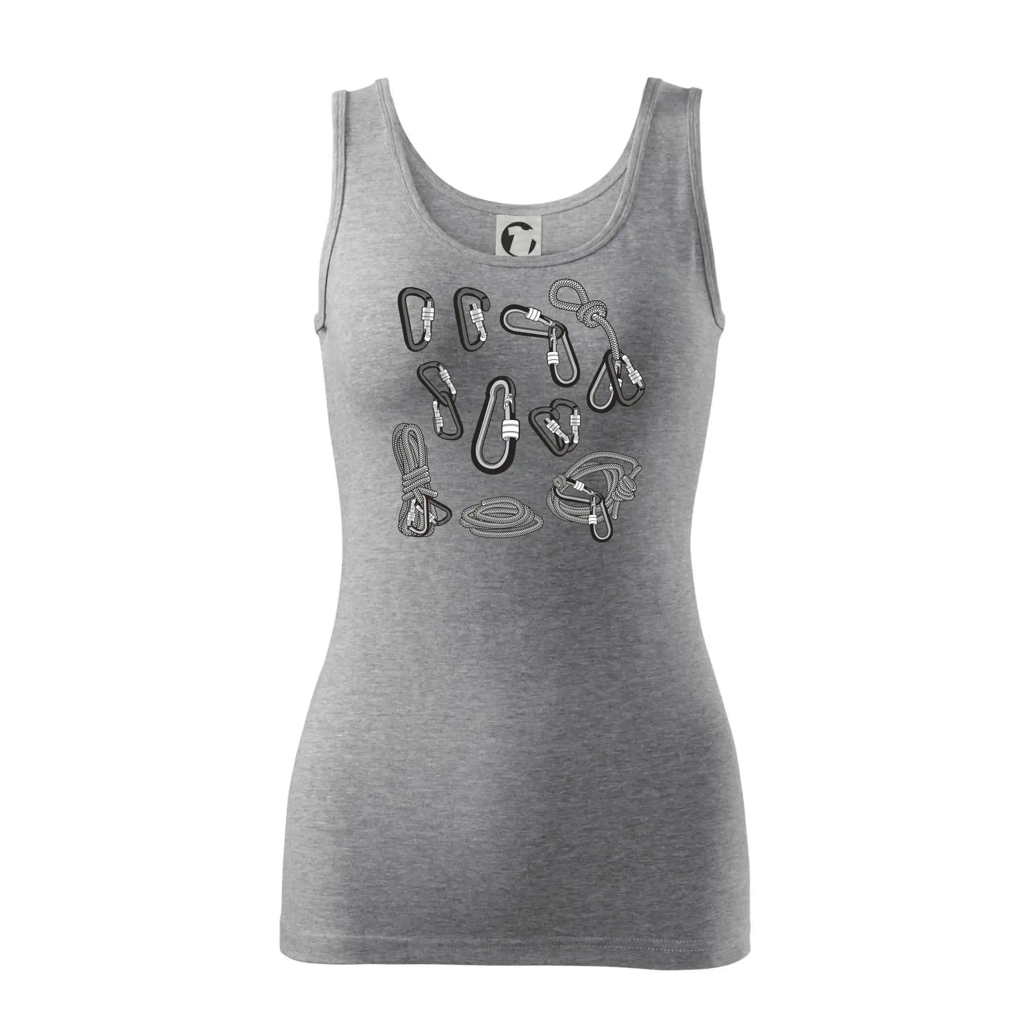 Poriadny horolezec musí mať poriadnu horolezeckú výbavu: karabínu, lano, úväz a samozrejme tričko s horolezeckým motívom