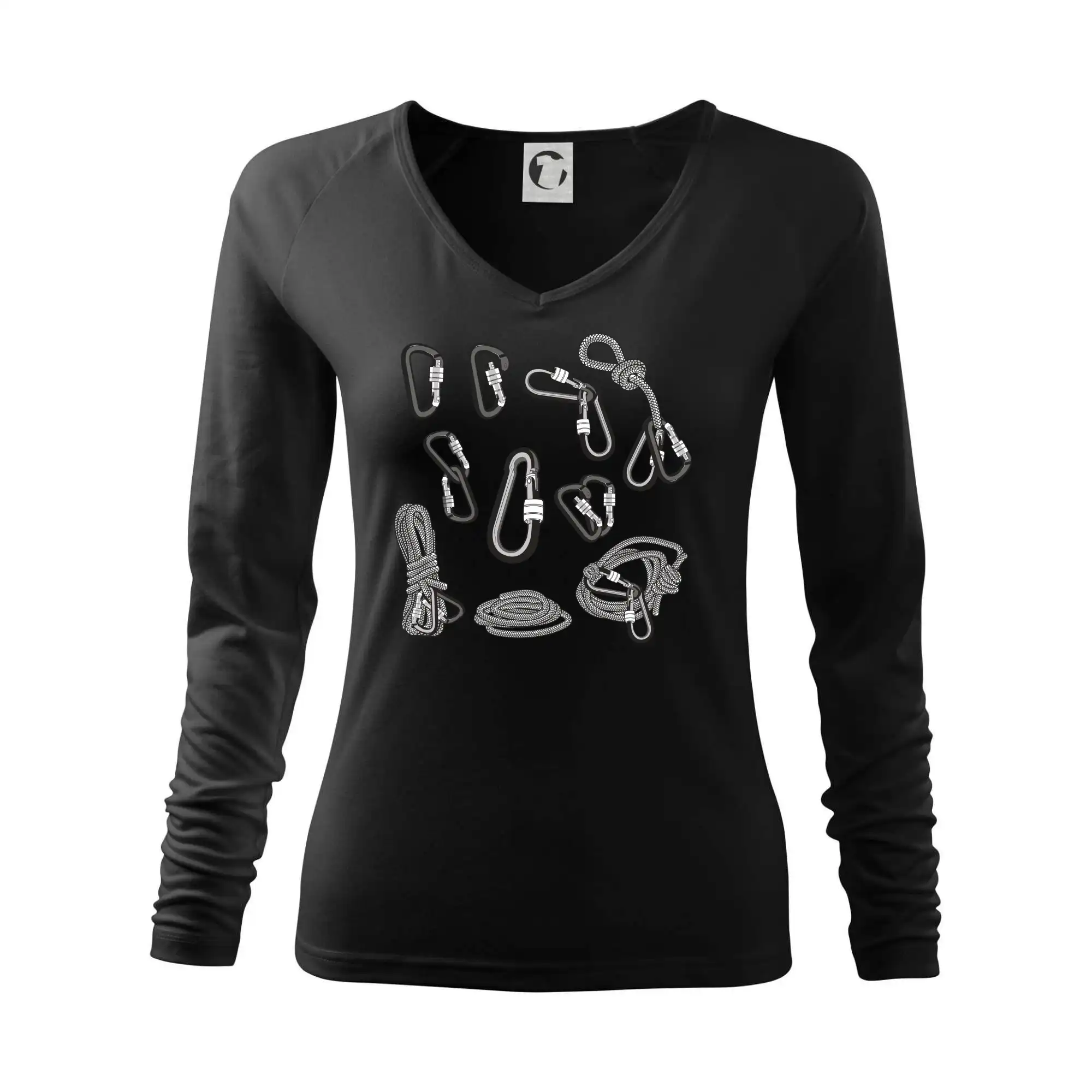 Poriadny horolezec musí mať poriadnu horolezeckú výbavu: karabínu, lano, úväz a samozrejme tričko s horolezeckým motívom