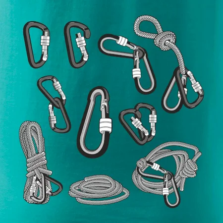 Poriadny horolezec musí mať poriadnu horolezeckú výbavu: karabínu, lano, úväz a samozrejme tričko s horolezeckým motívom
