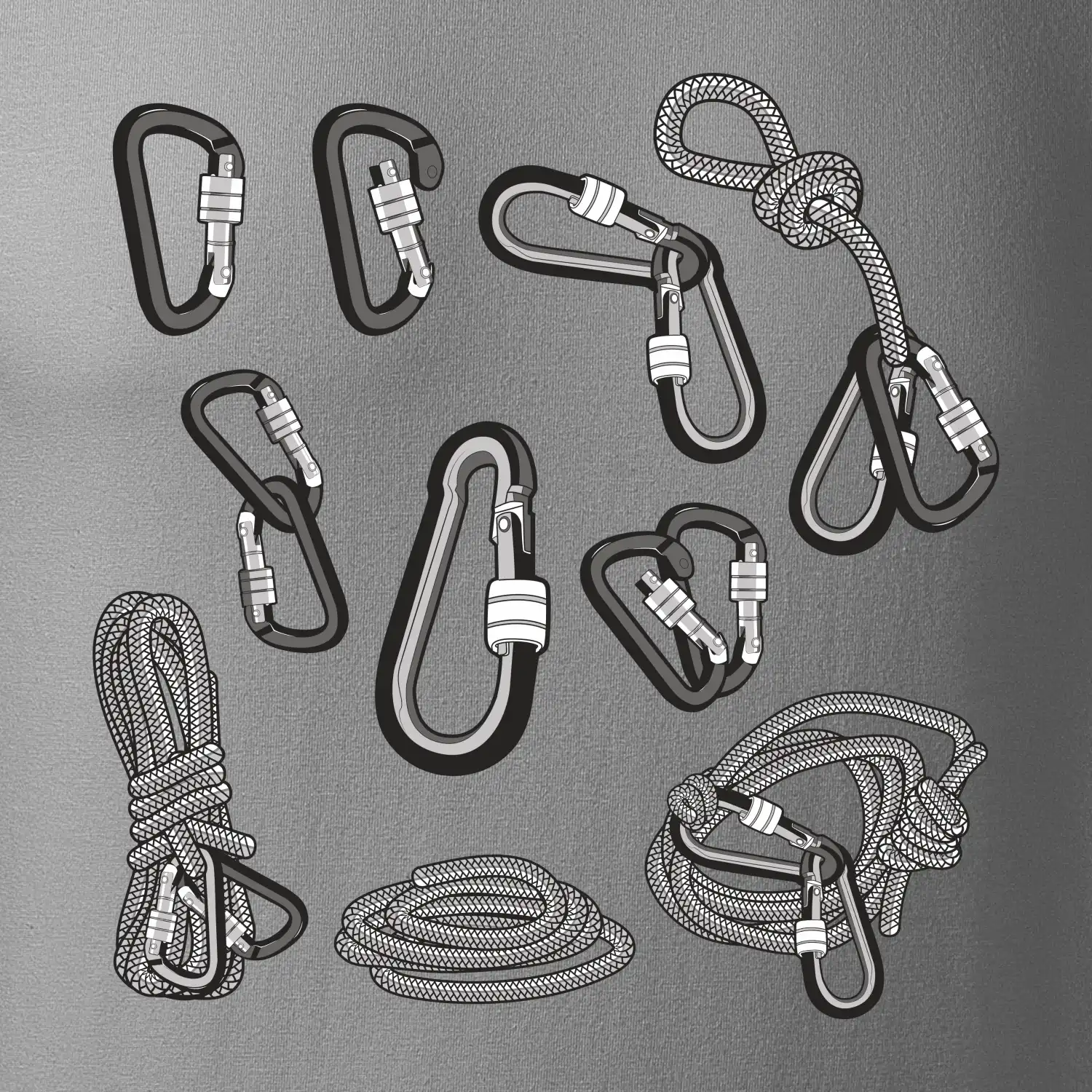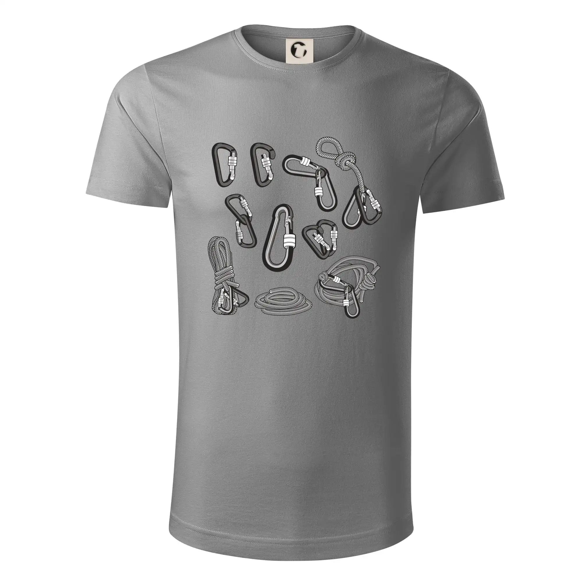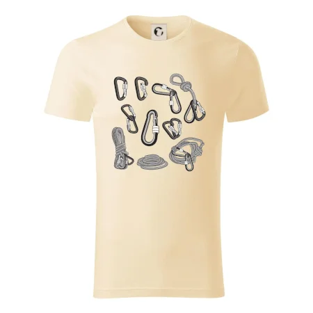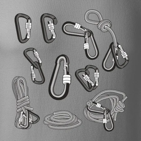 Poriadny horolezec musí mať poriadnu horolezeckú výbavu: karabínu, lano, úväz a samozrejme tričko s horolezeckým motívom