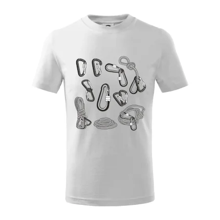 Poriadny horolezec musí mať poriadnu horolezeckú výbavu: karabínu, lano, úväz a samozrejme tričko s horolezeckým motívom