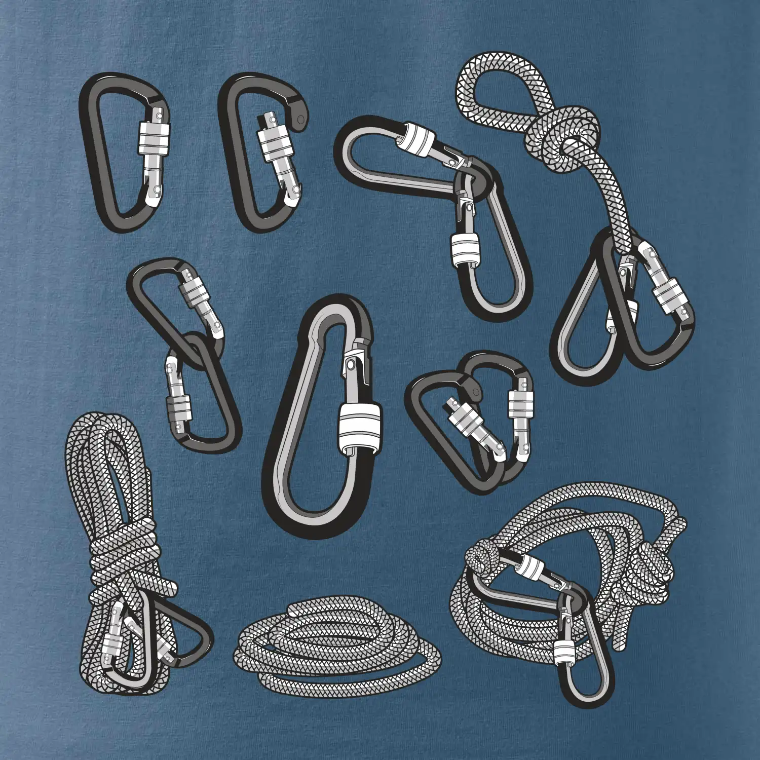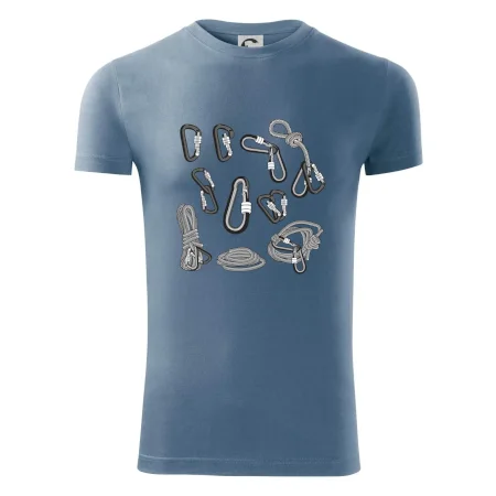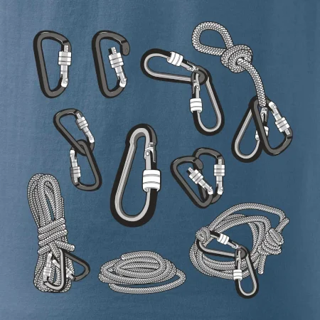 Poriadny horolezec musí mať poriadnu horolezeckú výbavu: karabínu, lano, úväz a samozrejme tričko s horolezeckým motívom