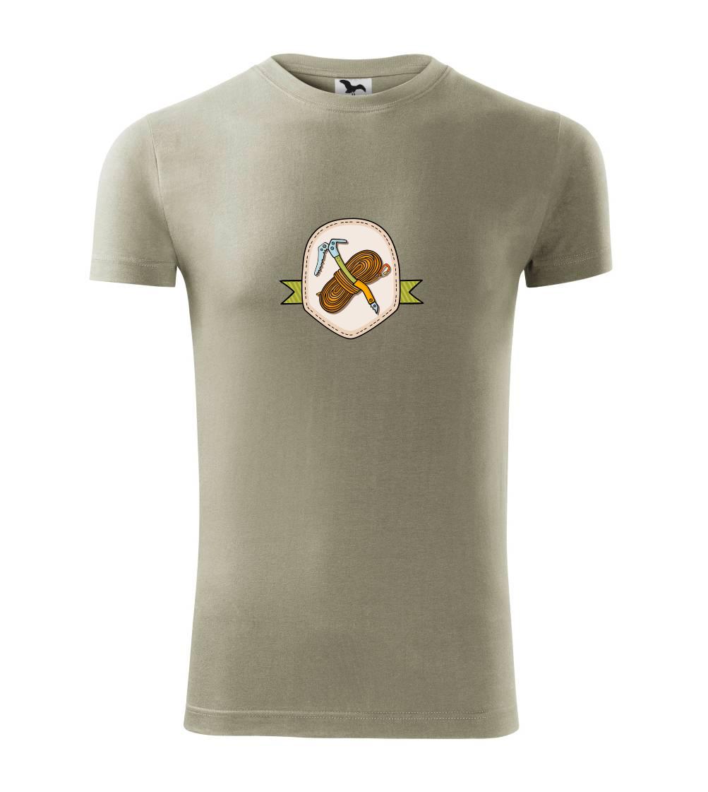 Tričko pre horolezca, na ktorom je horolezecké lano a cepín, Ťa poteší, pokiaľ si pravý horolezec. Máš rád adrenalín, šport a skaly? Kúp si toto horolezecké tričko a vyraz hneď liezť.