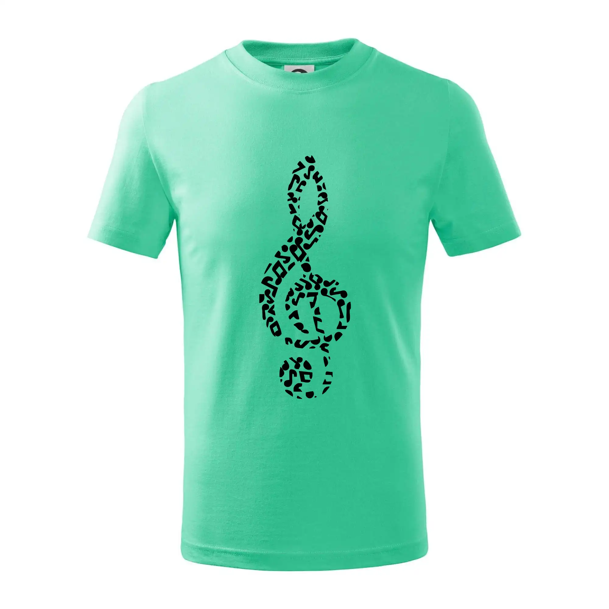 Detské tričko strednej gramáže s bočnými švami. Úzky priekrčník s prídavkom 5% elastanu. Vnútorná časť zadného priekrčníka začistená tkanou páskou. Spevnený ramenný šev.