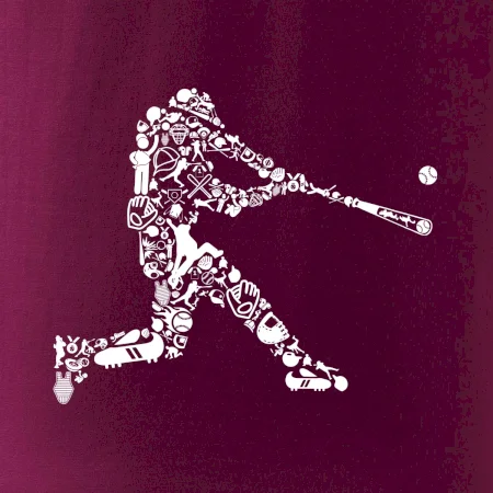 Triko s baseballovým hráčem vytvořeným z typických baseballových ikon, které jsou typické pro tuto hru. Perfektní dárek pro baseballistu, baseballista na triku.