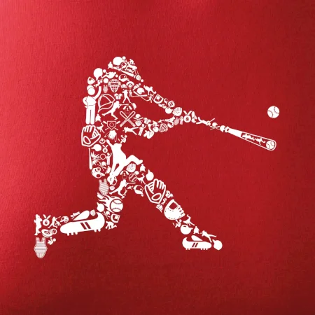 Triko s baseballovým hráčem vytvořeným z typických baseballových ikon, které jsou typické pro tuto hru. Perfektní dárek pro baseballistu, baseballista na triku.