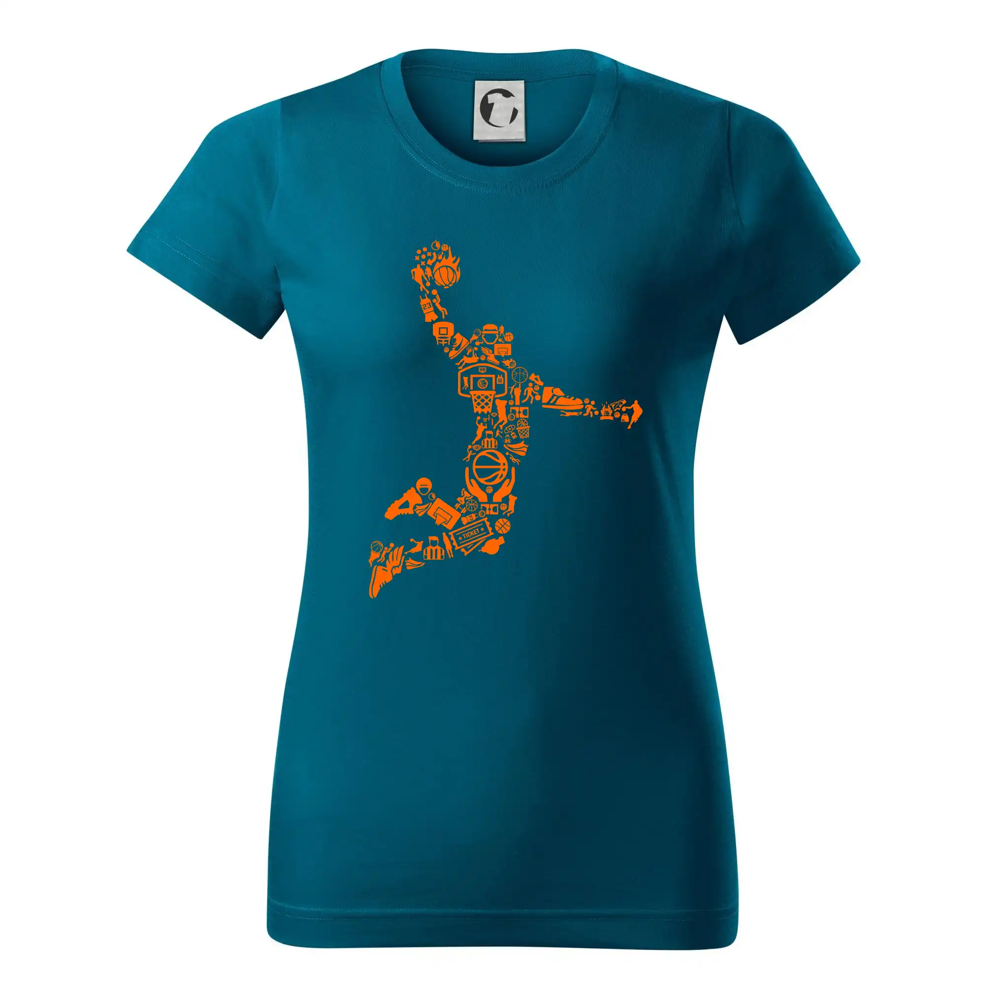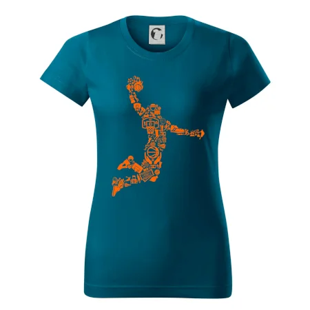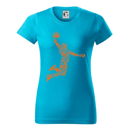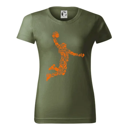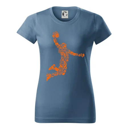 Triko s basketbalovým hráčem vytvořeným z typických basketbalových ikon, které jsou typické pro tuto míčovou hru. Perfektní dárek pro basketbalistu, basketbalista na triku.
