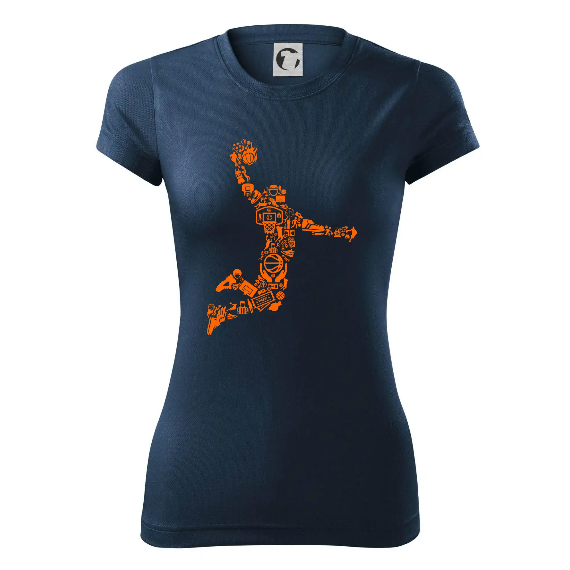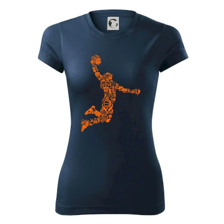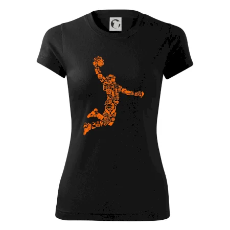 Triko s basketbalovým hráčem vytvořeným z typických basketbalových ikon, které jsou typické pro tuto míčovou hru. Perfektní dárek pro basketbalistu, basketbalista na triku.