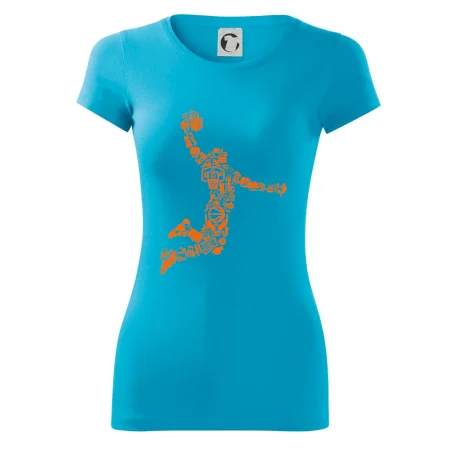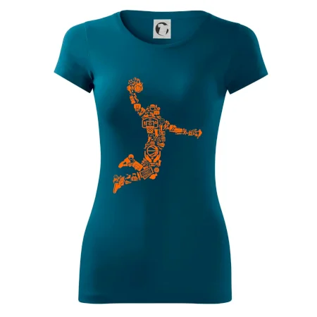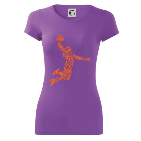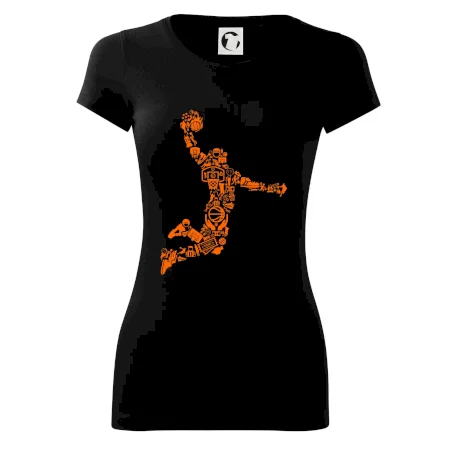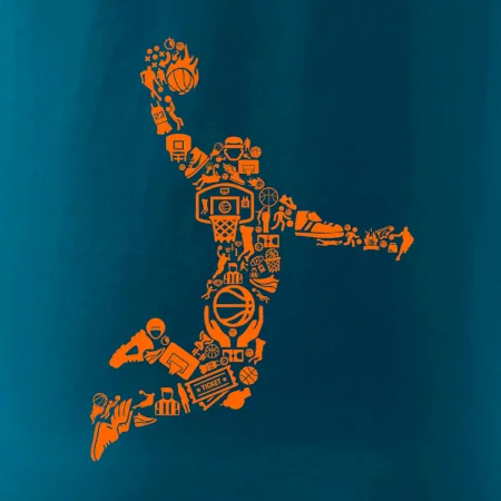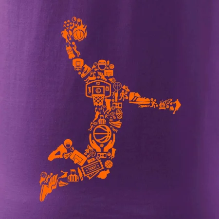 Triko s basketbalovým hráčem vytvořeným z typických basketbalových ikon, které jsou typické pro tuto míčovou hru. Perfektní dárek pro basketbalistu, basketbalista na triku.