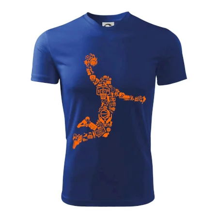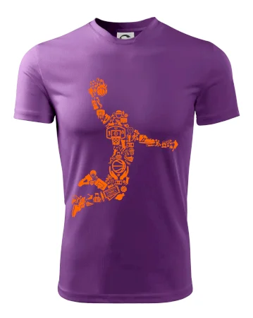 Triko s basketbalovým hráčem vytvořeným z typických basketbalových ikon, které jsou typické pro tuto míčovou hru. Perfektní dárek pro basketbalistu, basketbalista na triku.