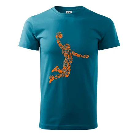 Triko s basketbalovým hráčem vytvořeným z typických basketbalových ikon, které jsou typické pro tuto míčovou hru. Perfektní dárek pro basketbalistu, basketbalista na triku.