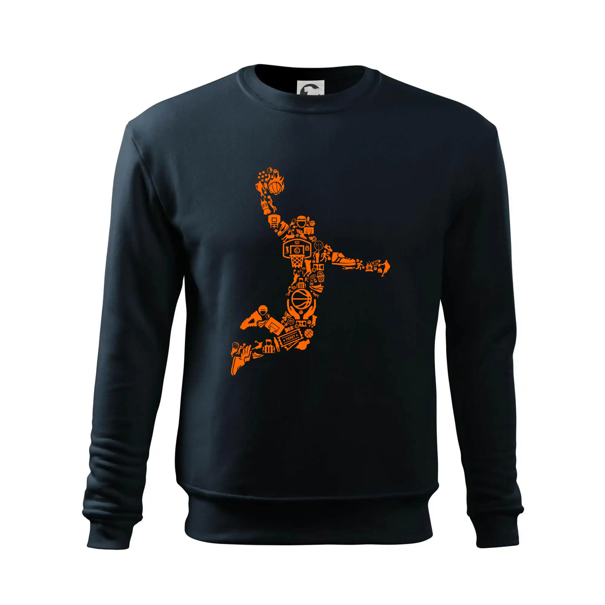 Triko s basketbalovým hráčem vytvořeným z typických basketbalových ikon, které jsou typické pro tuto míčovou hru. Perfektní dárek pro basketbalistu, basketbalista na triku.