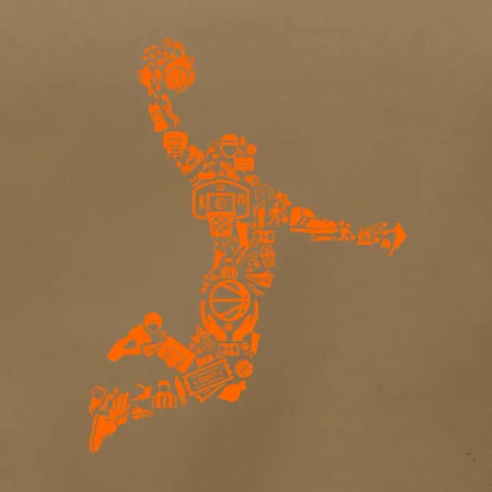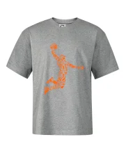 Triko s basketbalovým hráčem vytvořeným z typických basketbalových ikon, které jsou typické pro tuto míčovou hru. Perfektní dárek pro basketbalistu, basketbalista na triku.