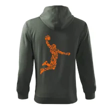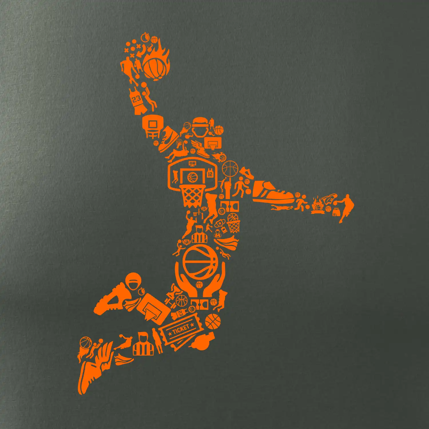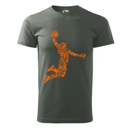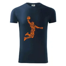 Triko s basketbalovým hráčem vytvořeným z typických basketbalových ikon, které jsou typické pro tuto míčovou hru. Perfektní dárek pro basketbalistu, basketbalista na triku.