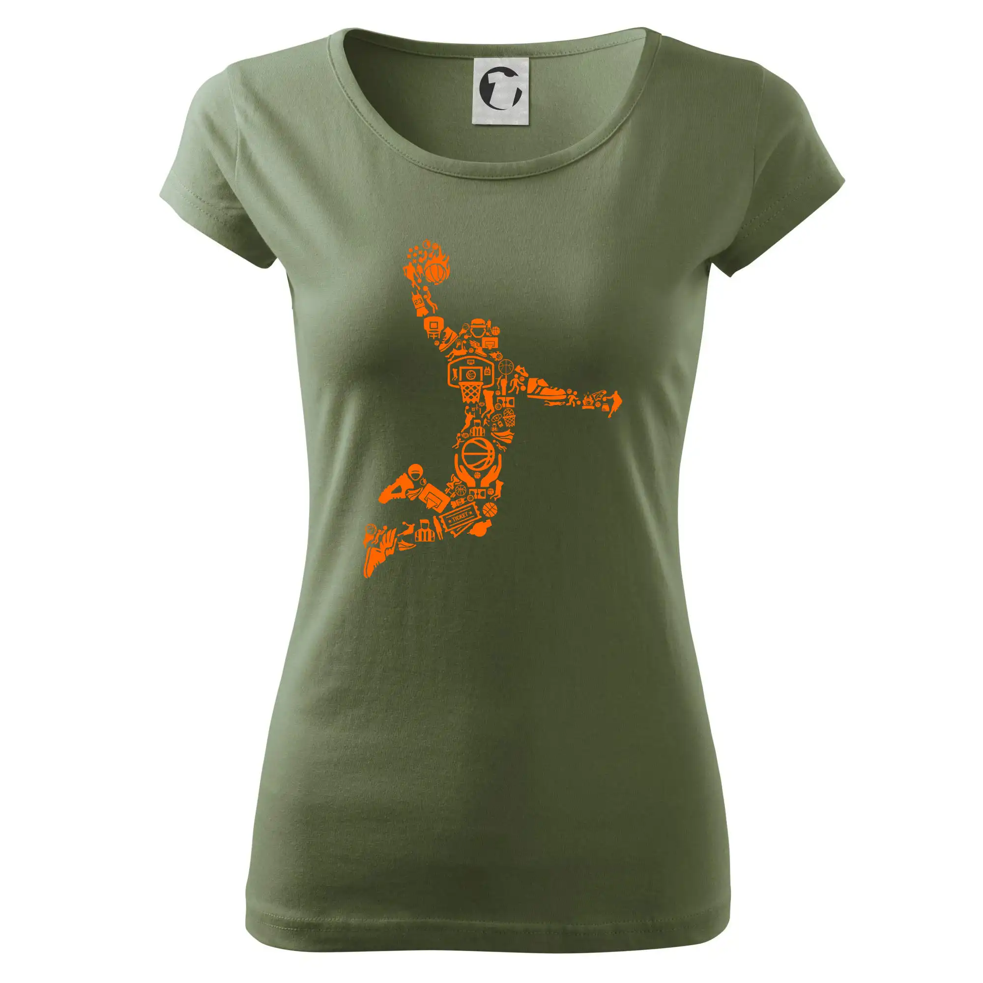 Triko s basketbalovým hráčem vytvořeným z typických basketbalových ikon, které jsou typické pro tuto míčovou hru. Perfektní dárek pro basketbalistu, basketbalista na triku.