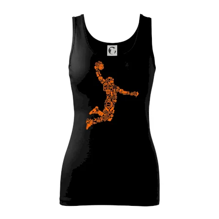 Triko s basketbalovým hráčem vytvořeným z typických basketbalových ikon, které jsou typické pro tuto míčovou hru. Perfektní dárek pro basketbalistu, basketbalista na triku.