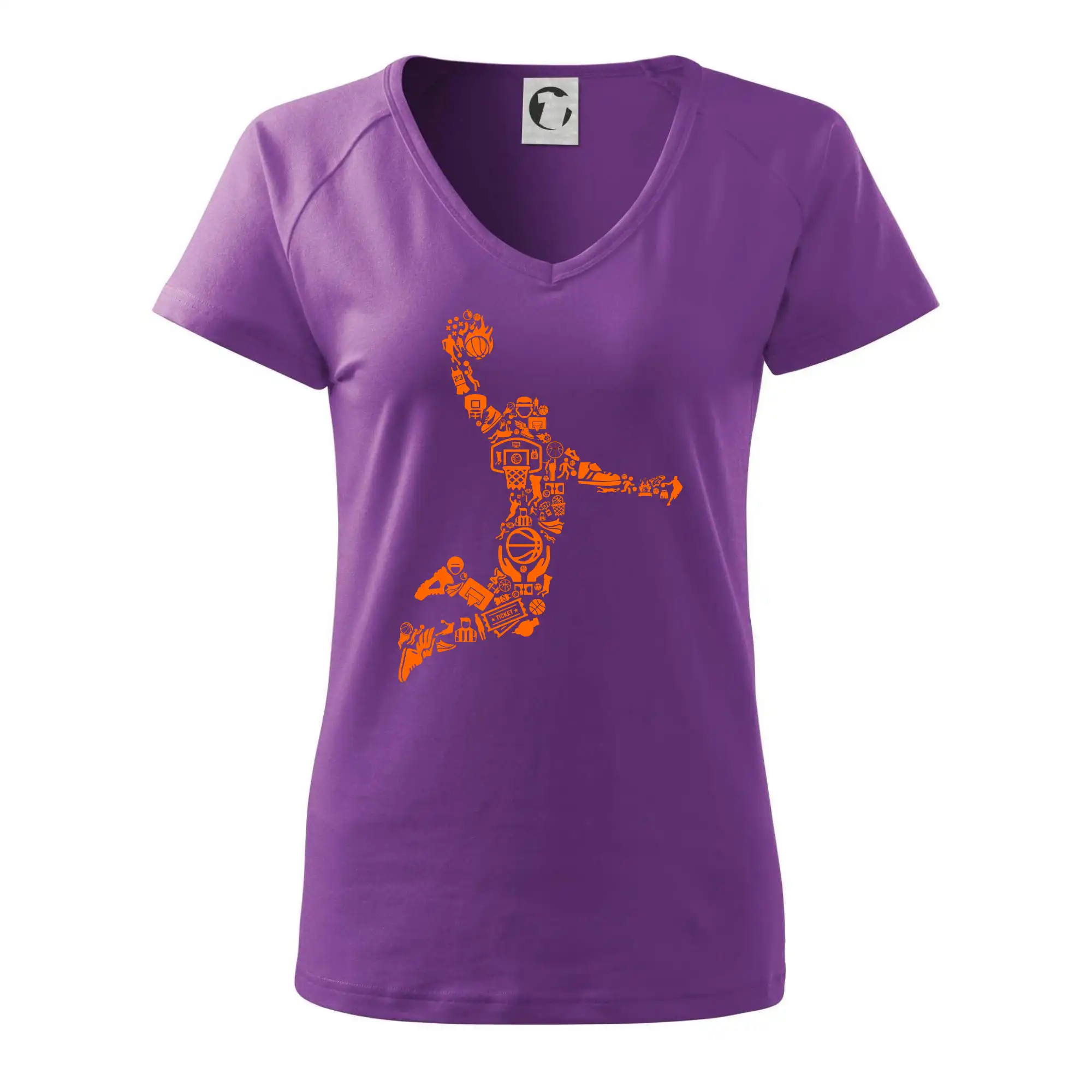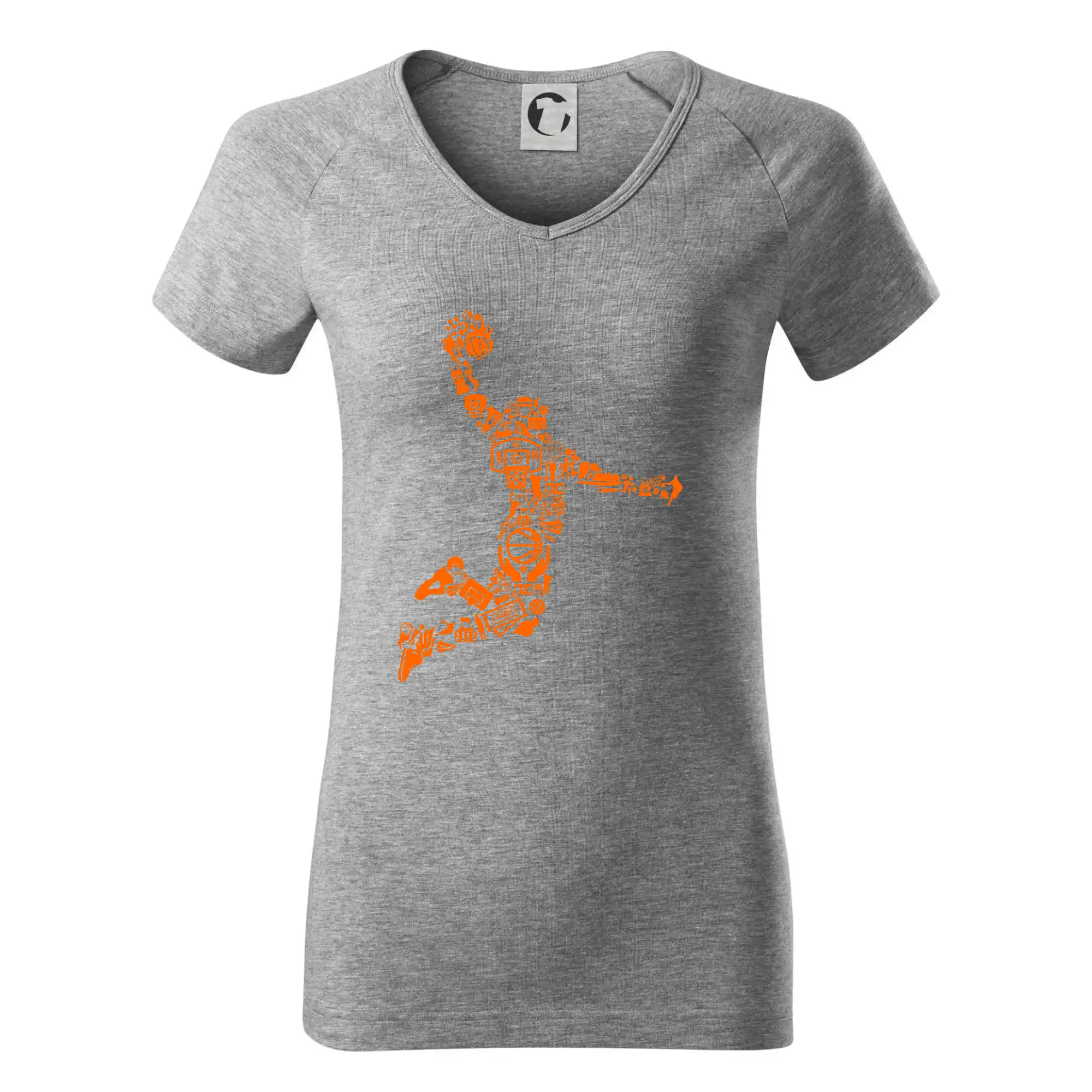 Triko s basketbalovým hráčem vytvořeným z typických basketbalových ikon, které jsou typické pro tuto míčovou hru. Perfektní dárek pro basketbalistu, basketbalista na triku.