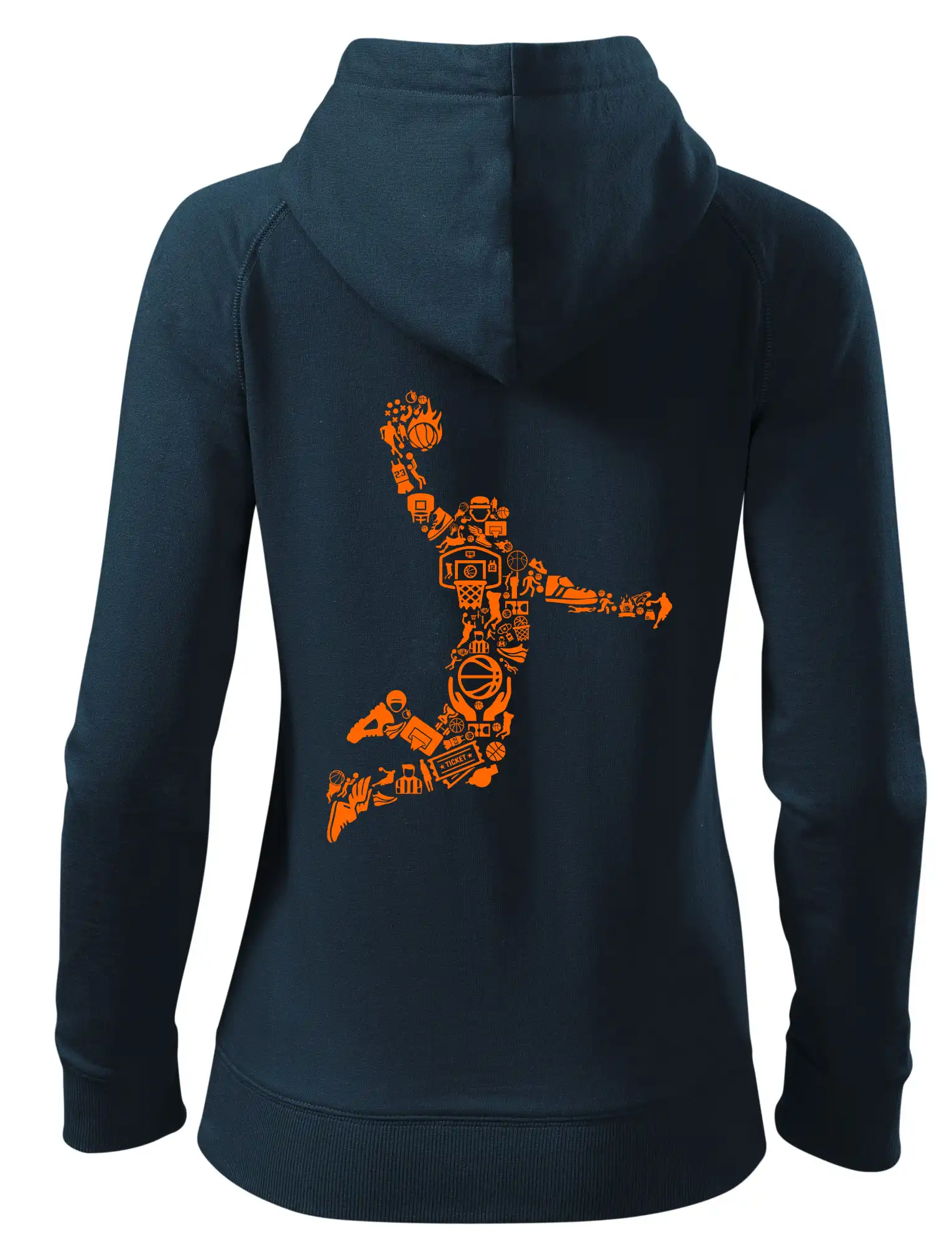 Triko s basketbalovým hráčem vytvořeným z typických basketbalových ikon, které jsou typické pro tuto míčovou hru. Perfektní dárek pro basketbalistu, basketbalista na triku.