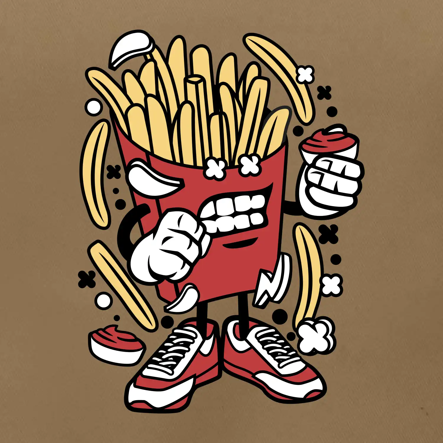 - Okolo krku nastaviteľný remienok s prackou.