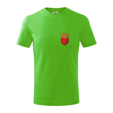 Detské tričko strednej gramáže s bočnými švami. Úzky priekrčník s prídavkom 5% elastanu. Vnútorná časť zadného priekrčníka začistená tkanou páskou. Spevnený ramenný šev.