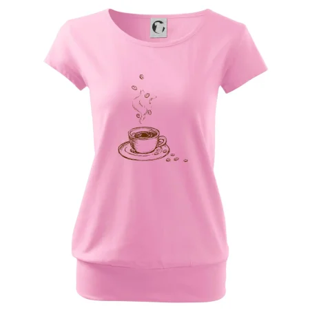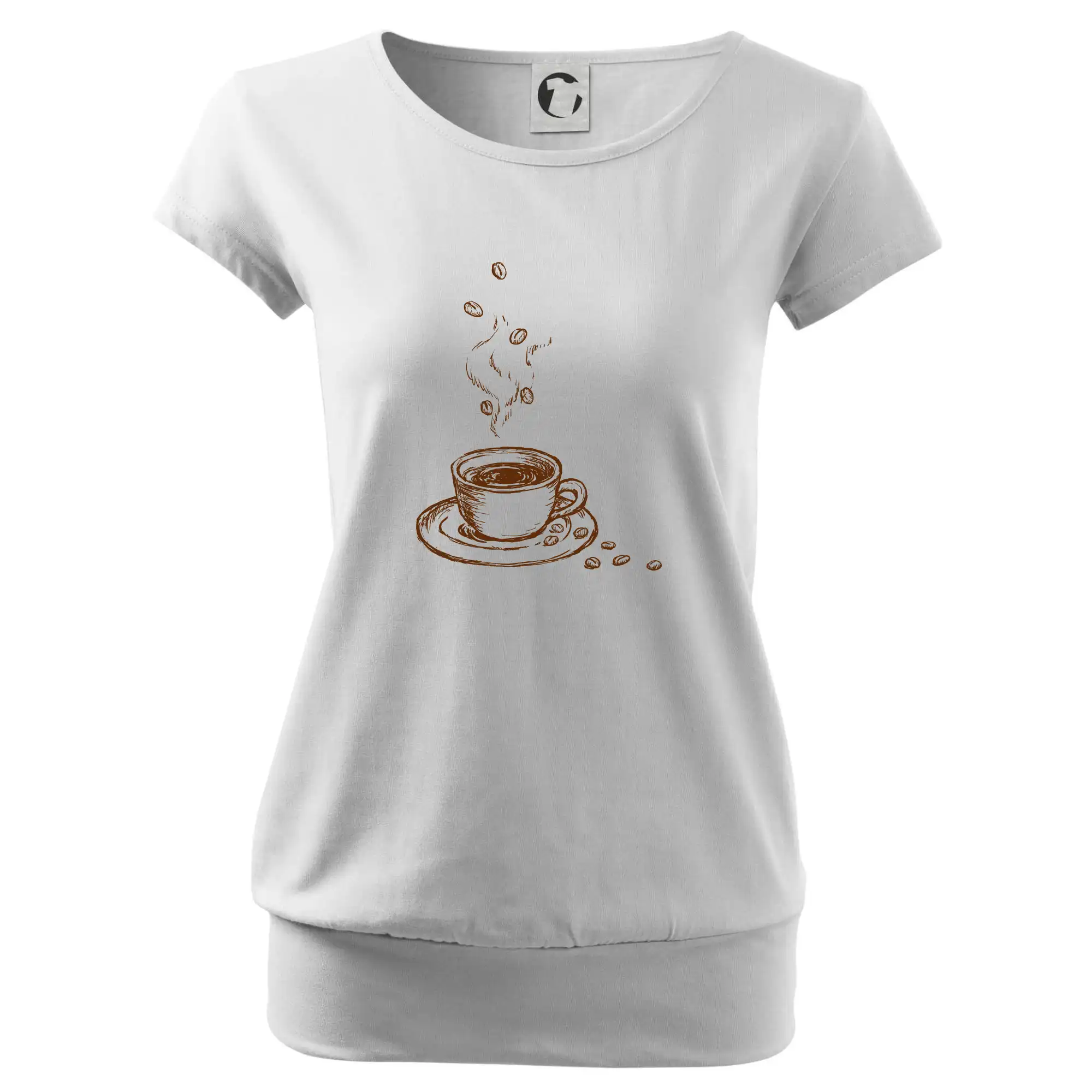Trendové dámske tričko s veľmi krátkym rukávom, voľnejšieho strihu, v dolnom kraji všité do širokého lemu. Okrúhly priekrčník s úzkym lemom zo zhodného materiálu.