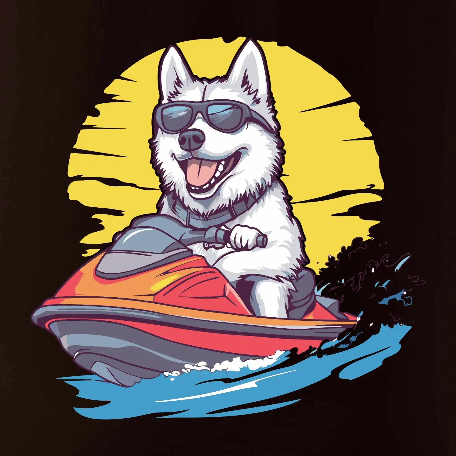 Husky na vodnom skútri