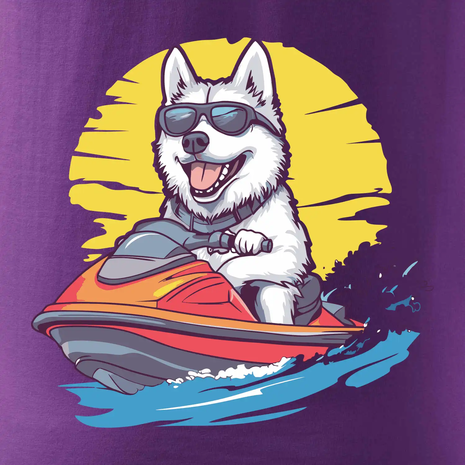 Husky na vodnom skútri