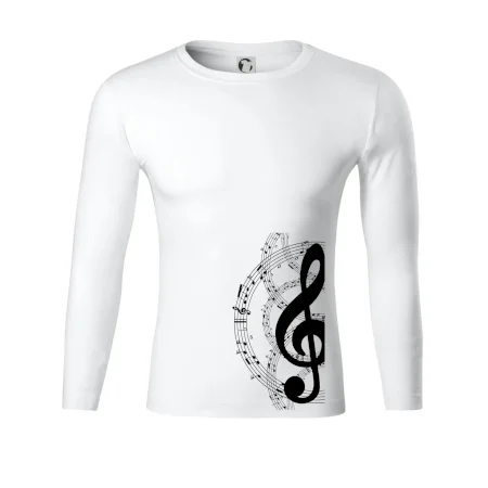 Tričko s motívom nôt a husľového kľúča pre milovníkov hudby.