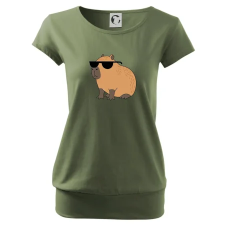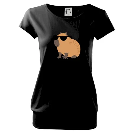 Trendové dámske tričko s veľmi krátkym rukávom, voľnejšieho strihu, v dolnom kraji všité do širokého lemu. Okrúhly priekrčník s úzkym lemom zo zhodného materiálu.