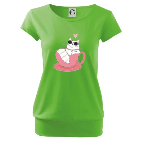 Trendové dámske tričko s veľmi krátkym rukávom, voľnejšieho strihu, v dolnom kraji všité do širokého lemu. Okrúhly priekrčník s úzkym lemom zo zhodného materiálu.