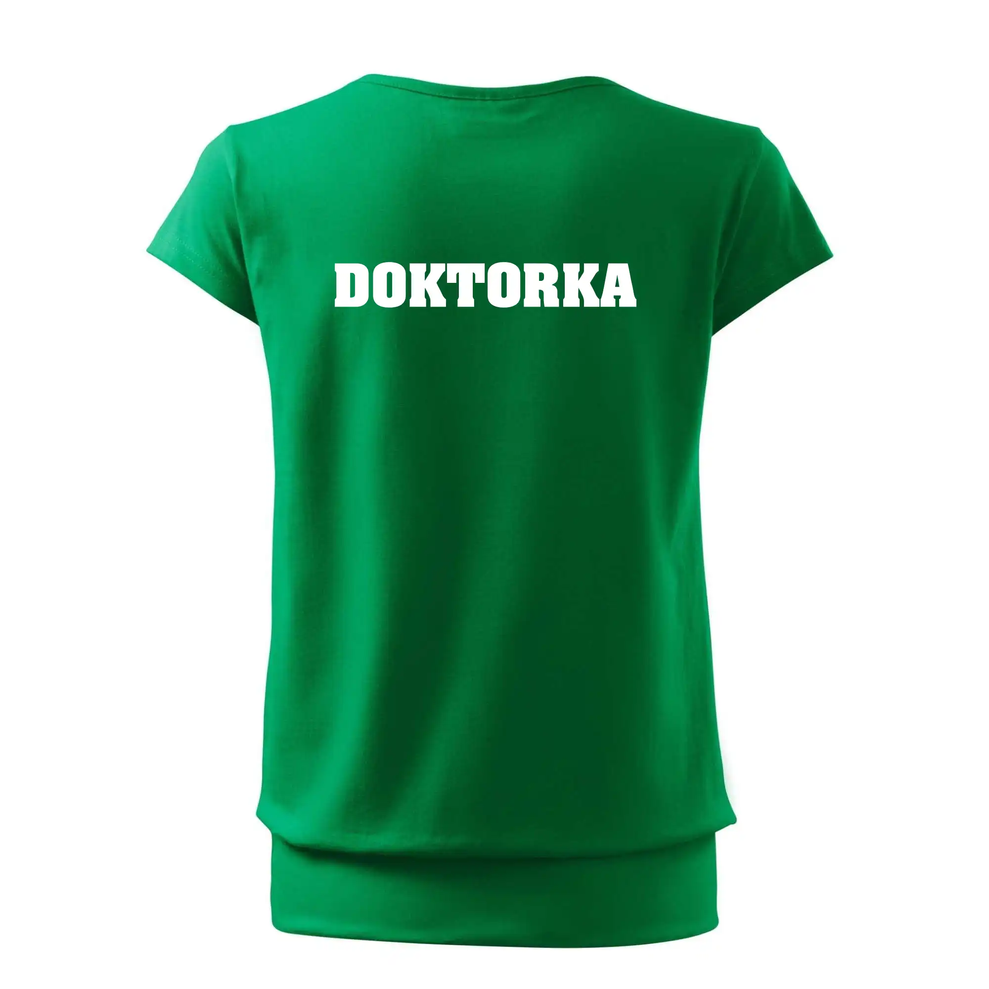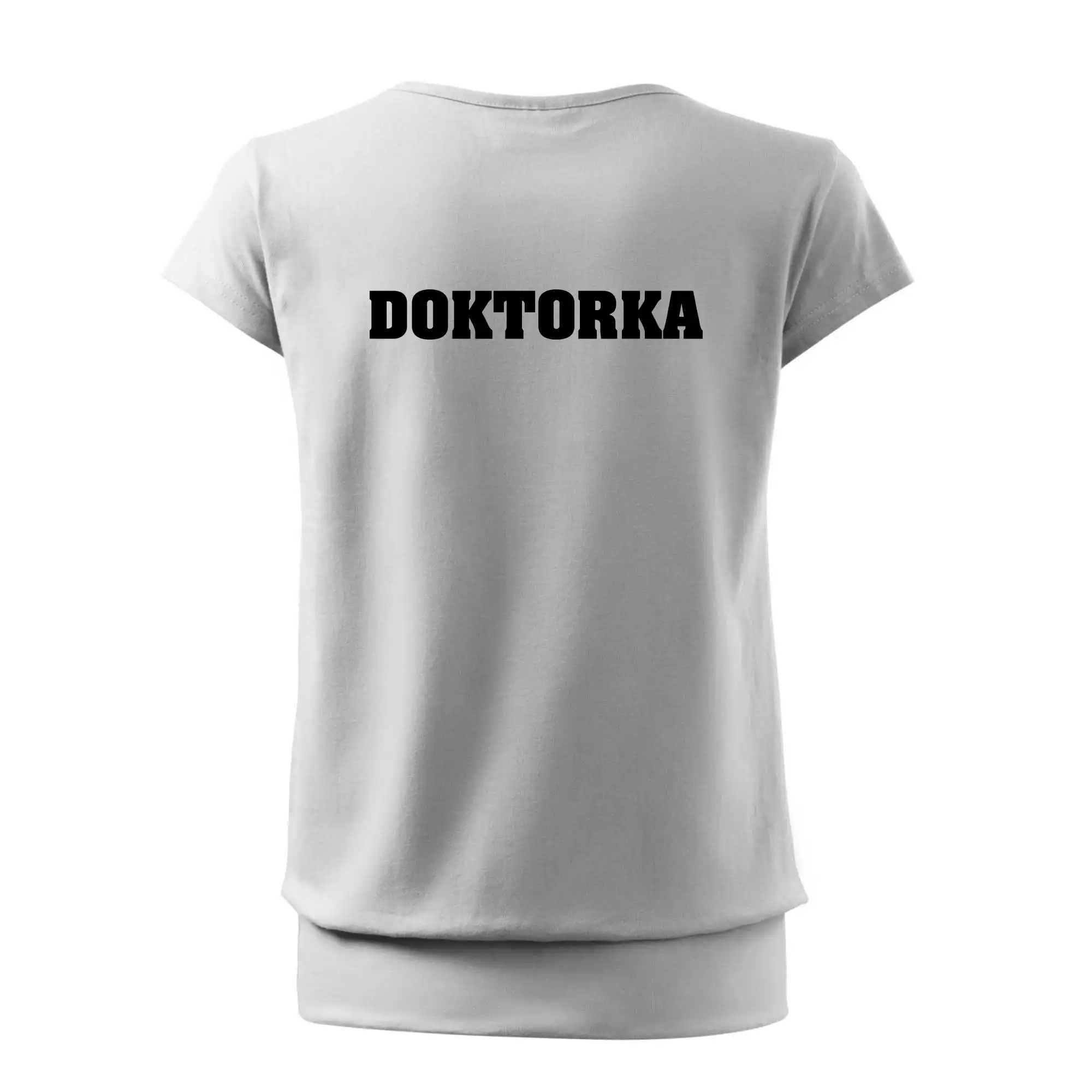Trendové dámske tričko s veľmi krátkym rukávom, voľnejšieho strihu, v dolnom kraji všité do širokého lemu. Okrúhly priekrčník s úzkym lemom zo zhodného materiálu.