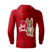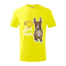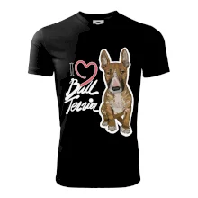 Tričko pre psíčkarov, na ktorom je nápis " I love bul terrier" je vhodný darček pre pšíčkarov, ktorí majú doma práve bull teriéra. Ukáž, že si správny psíčkar a obleč si na seba toto parádne tričko so psom.