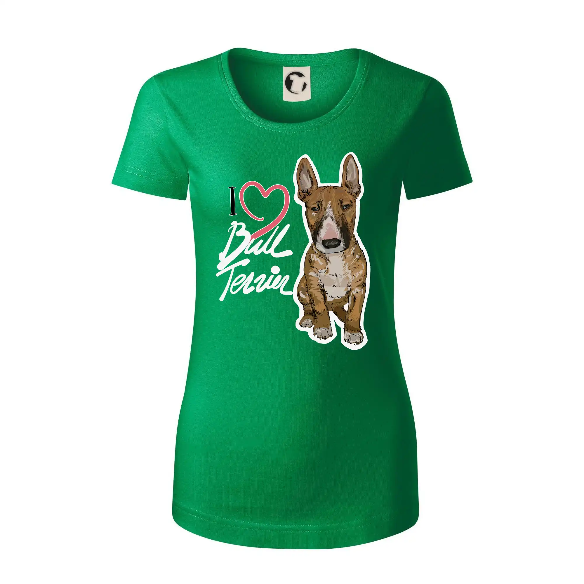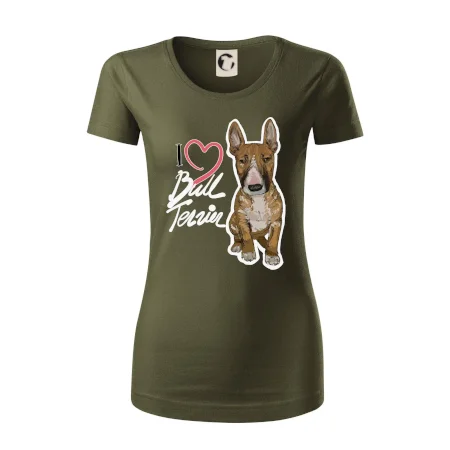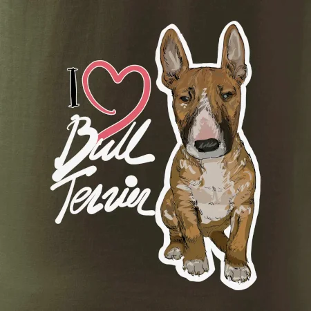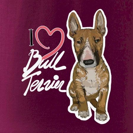 Tričko pre psíčkarov, na ktorom je nápis " I love bul terrier" je vhodný darček pre pšíčkarov, ktorí majú doma práve bull teriéra. Ukáž, že si správny psíčkar a obleč si na seba toto parádne tričko so psom.