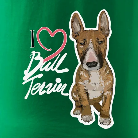 Tričko pre psíčkarov, na ktorom je nápis " I love bul terrier" je vhodný darček pre pšíčkarov, ktorí majú doma práve bull teriéra. Ukáž, že si správny psíčkar a obleč si na seba toto parádne tričko so psom.