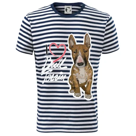 Tričko pre psíčkarov, na ktorom je nápis " I love bul terrier" je vhodný darček pre pšíčkarov, ktorí majú doma práve bull teriéra. Ukáž, že si správny psíčkar a obleč si na seba toto parádne tričko so psom.