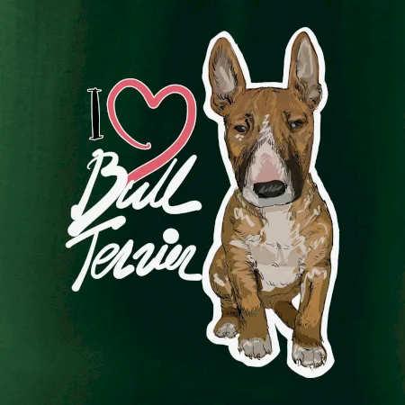 Tričko pre psíčkarov, na ktorom je nápis " I love bul terrier" je vhodný darček pre pšíčkarov, ktorí majú doma práve bull teriéra. Ukáž, že si správny psíčkar a obleč si na seba toto parádne tričko so psom.