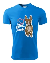 Tričko pre psíčkarov, na ktorom je nápis " I love bul terrier" je vhodný darček pre pšíčkarov, ktorí majú doma práve bull teriéra. Ukáž, že si správny psíčkar a obleč si na seba toto parádne tričko so psom.